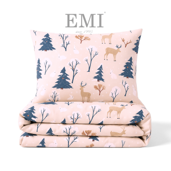 Різдвяна бавовняна постільна білизна Frostelle EMI на блискавці принесе у вашу спальню чарівну святкову атмосферу. Виготовлена зі 100% високоякісної бавовни делюкс, вона м'яка, повітропроникна та приємна на дотик. Сучасний зимовий візерунок з оленями, деревами та снігом зробить ваш сон приємнішим, а інтер'єр затишним протягом усього Різдва.